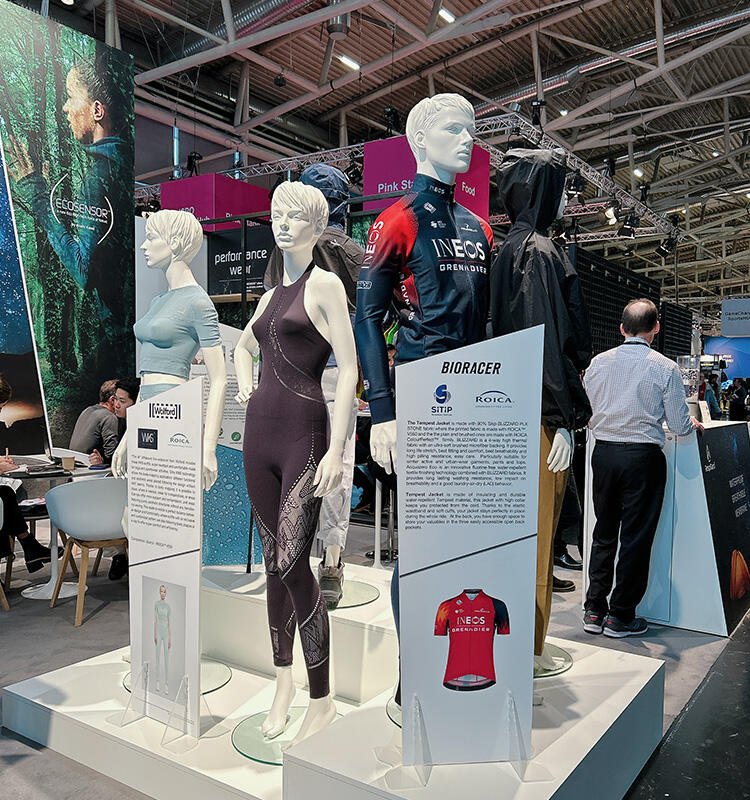 旭化成参展了2023年11月28日至30日为期三天的慕尼黑ISPO展会,这是全球巨大规模的体育用品展会之一。在旭化成的展台,我们展示了面向运动服饰市场推出的产品,包括优质氨纶纤维ROICA™、旭化成Advance株式会社的高功能面料ECOSENSOR™和不含PFAS*的透气防水型薄膜RespiGard™。此外,我们还介绍了公司利用生物乙醇生产基础化学品的技术,这些化学品可用作合成纤维和塑料等各种体育资材的原料。旭化成在HALL B1未来实验室出展,吸引了参与者的极大关注。诚挚地感谢各位参与和见证了我们展台的盛况。