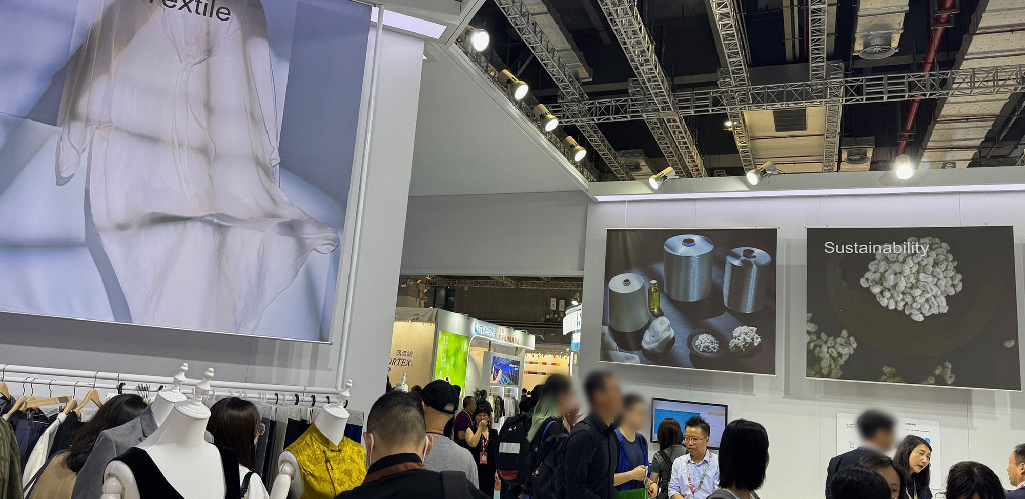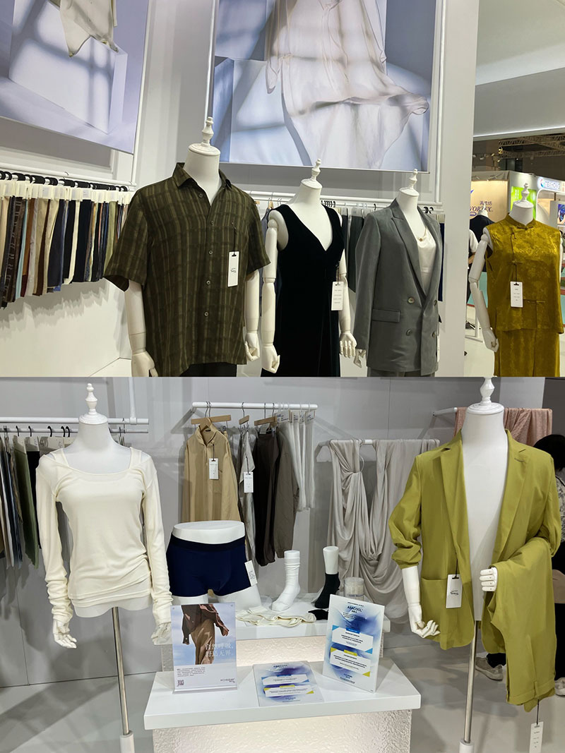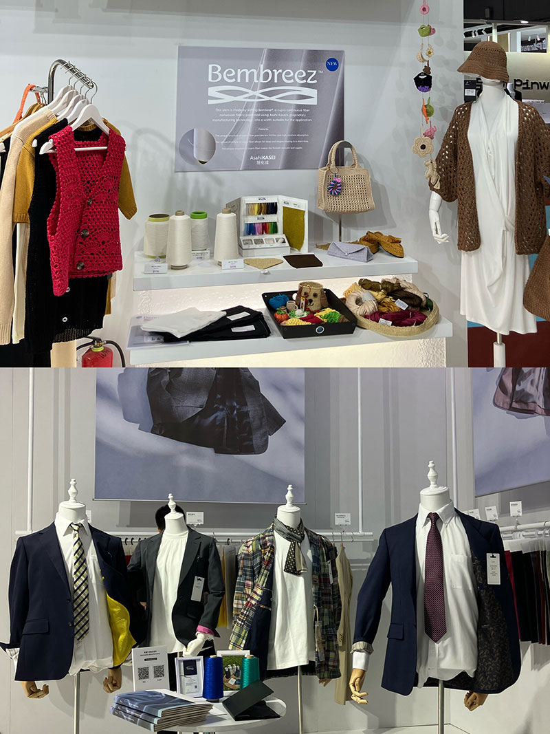铜氨丝品牌宾霸®(Bemberg™)携新产品亮相该展会,集中展示了宾霸®长纤维、短纤维,它们被广泛应用于外衣、里布、内衣及运动装等多种场景应用方案以及与中国本土合作伙伴共同研发的新型差异化面料和成品,还特别呈现了采用铜氨纤维连续长纤维无纺布Bemliese™制作的带子纱Bembreez™,颇受客人青睐。
